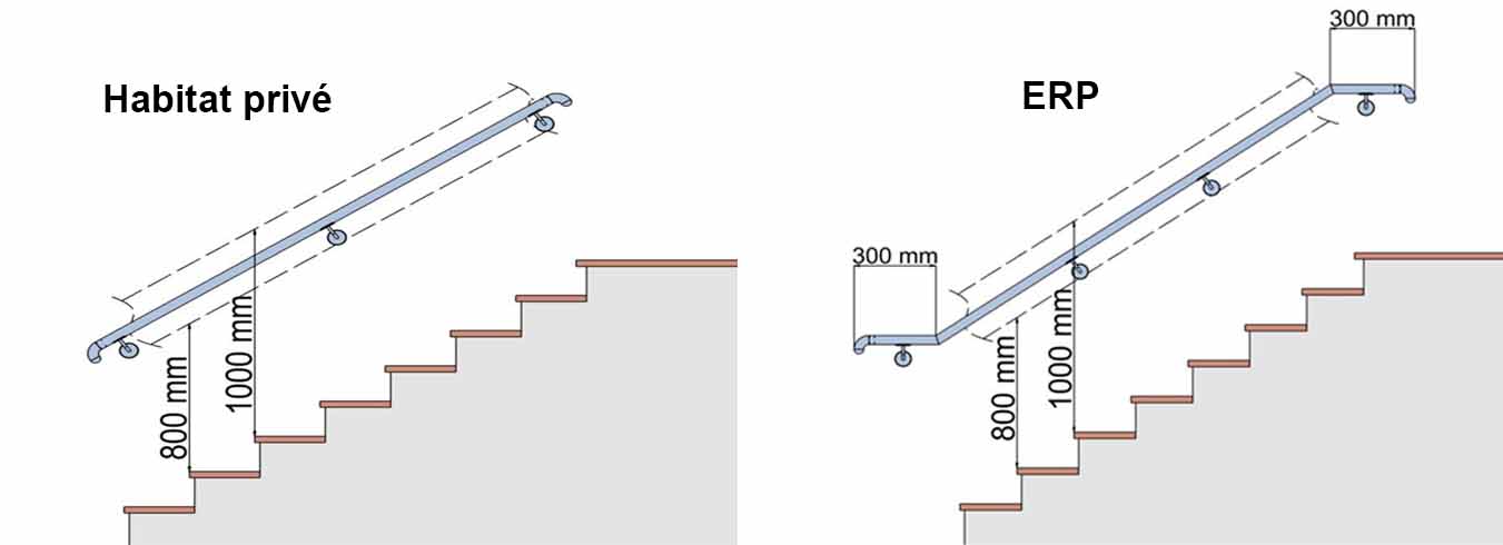 Nous détaillerons ici la norme pour les ERP (Etablissements Recevant du Public) mais vous pouvez en savoir plus dans le cas des normes des mains courantes escaliers en copropriété et dans le cadre du code du travail !