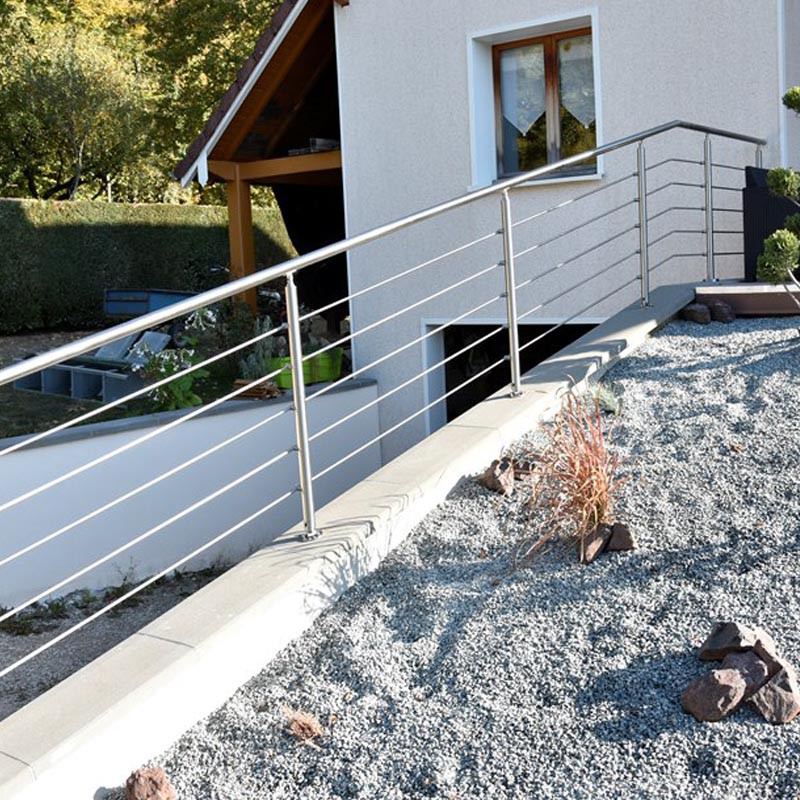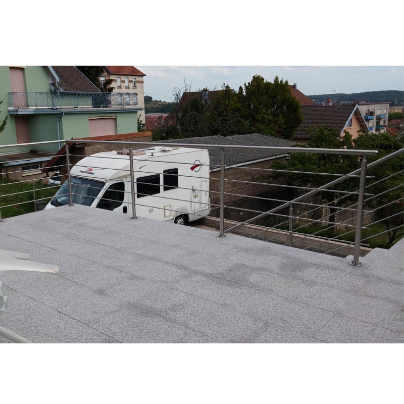 Garde corps de terrasse ou d’escalier à 5 barres en inox massif (plein) pour une très grande longévité.